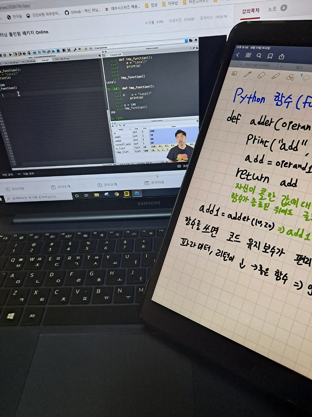 오늘의 강의는 수학의 꽃이자 코딩의 꽃이라 할 수 있는 함수(function)을 배웠다.