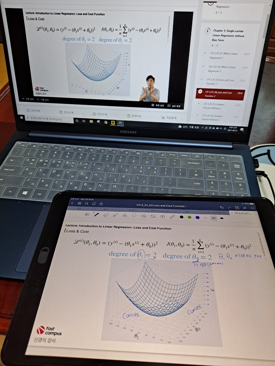 여기서 배운 convex한 모형은 노이즈가 하나도 없는 이상적인 함수의 모양이었고, 실제로 그려보게 된다면 x1,x2에 대한 term이 들어가게되면 모양이 오목->평평한 모양으로 펴질 수 있다는 것을 알려주셨다.
