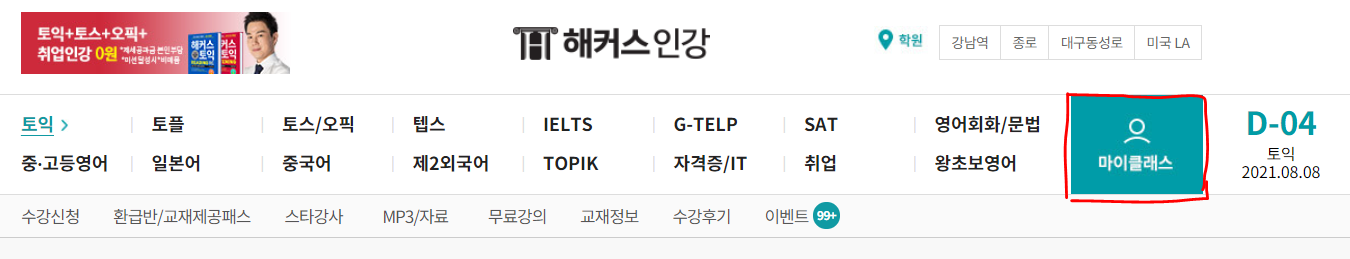 결제 후에 마이클래스를 클릭하면 환급반을 바로 수강할 수 있다!