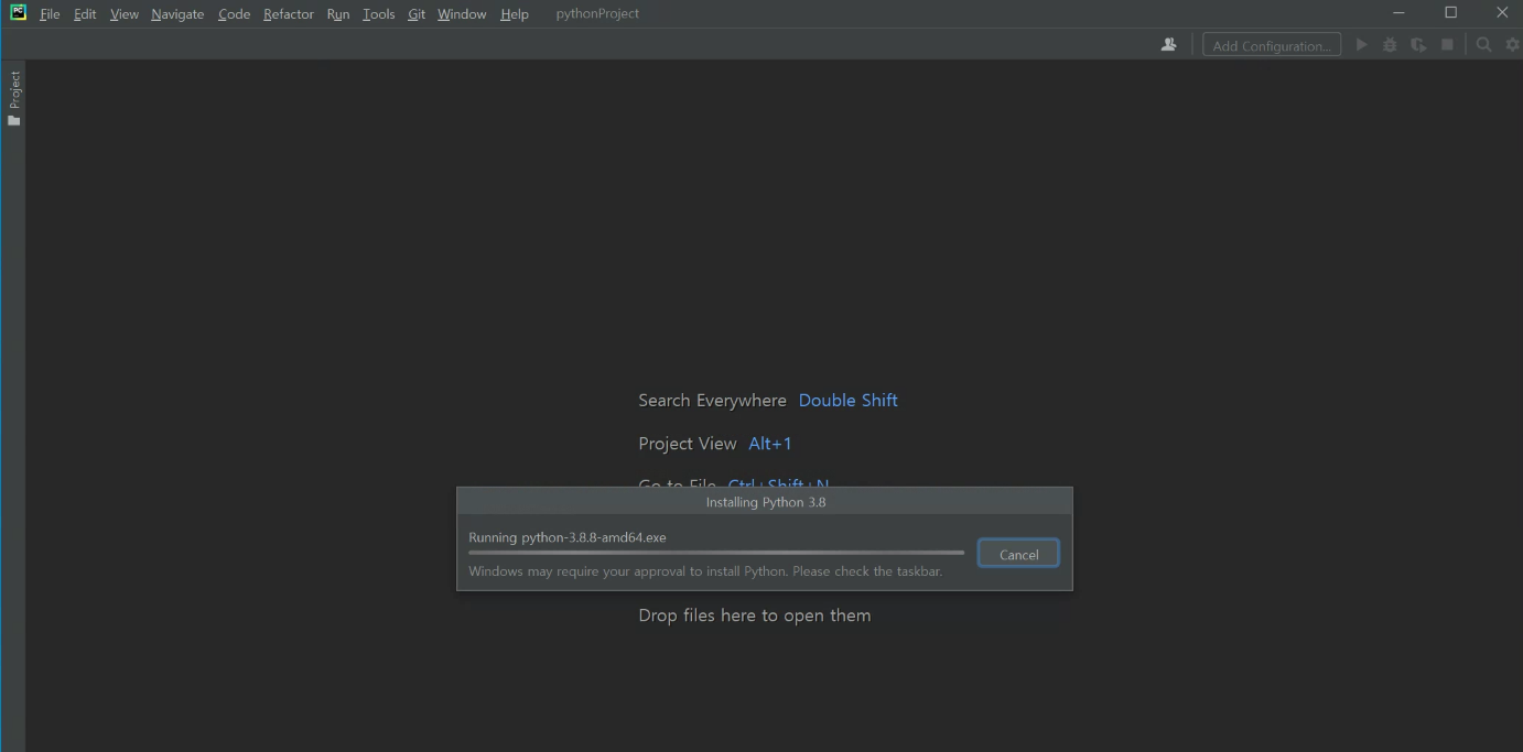그리고 굉장히 친절하게도 Python 3.8.8 을 설치해주는 실행창이 떴다.