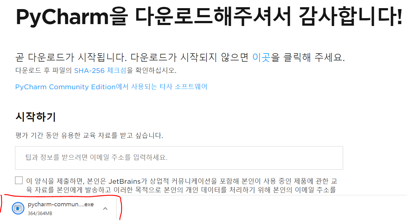 다운로드된 exe 파일을 실행시켜 파이참을 다운로드 받자.